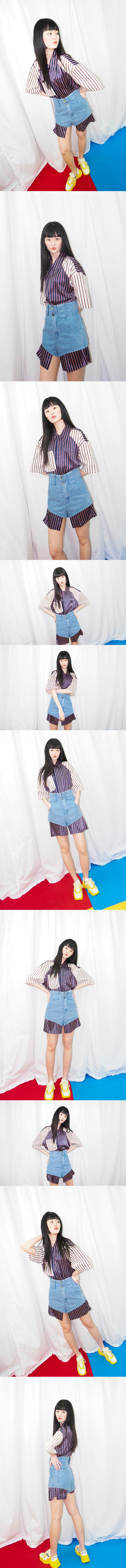 두가지 스트라이프 원단사용으로 유니크한 느낌을 주는 스트라이프 셔츠입니다.